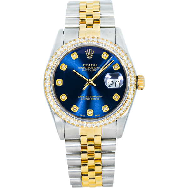 Rolex 36mm Datejust Blue Dial, Diamond Bezel