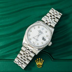 Rolex 36mm Datejust White Pearl Dial, Diamond Bezel