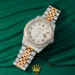 Rolex 36mm Iced Out Two Tone Rose Double Row Bezel